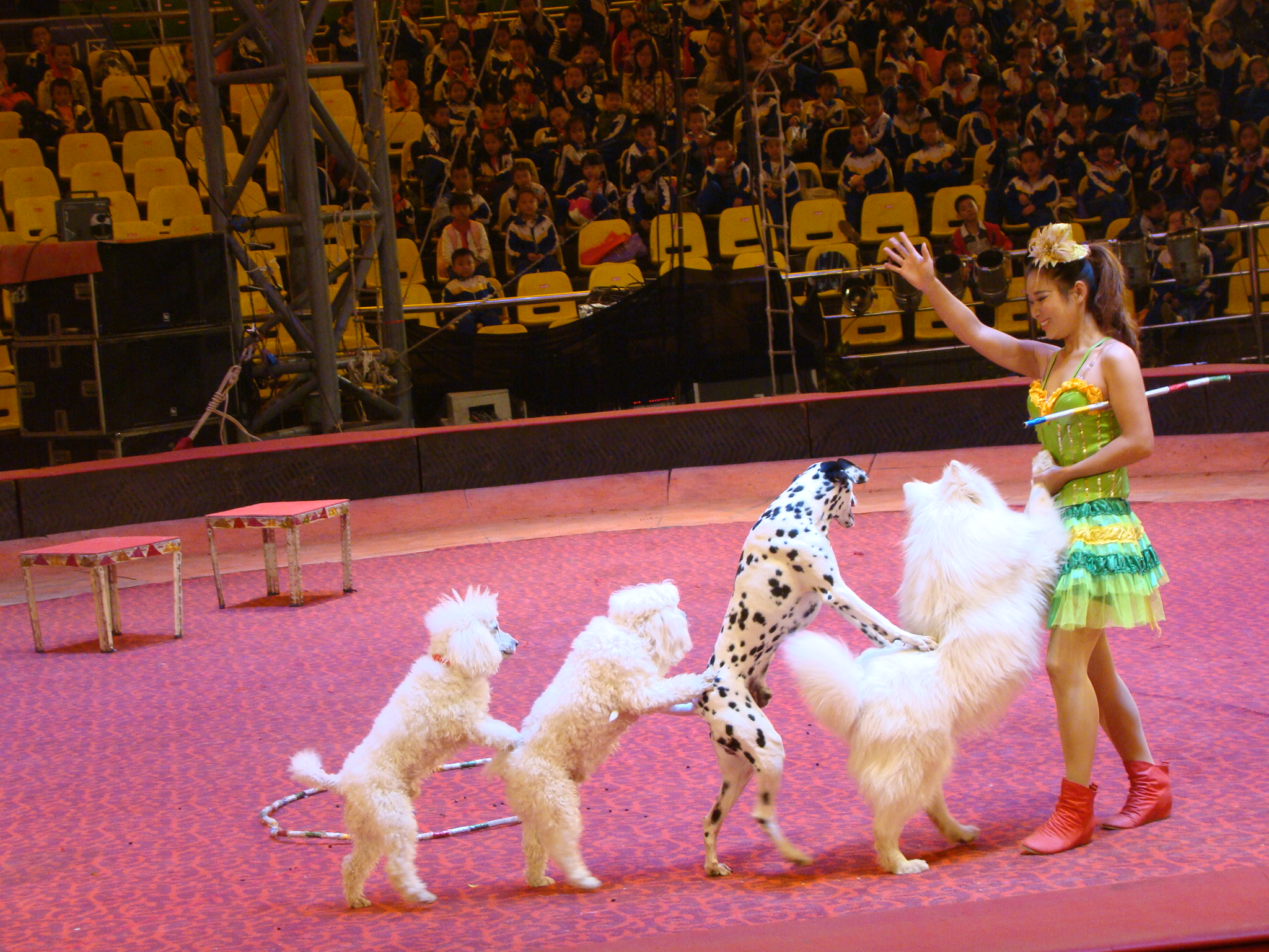 在本次活动中,同学们首先观看了南昌国际马戏团带来的艺术表演。精彩纷呈的节目牢牢吸引了同学们的注意力,风趣幽默的互动活动给表演现场带了阵阵欢呼。孩子们对小动物的聪明机灵赞不绝口,同时也对驯兽员和动物的默契配合产生了浓厚的兴趣。