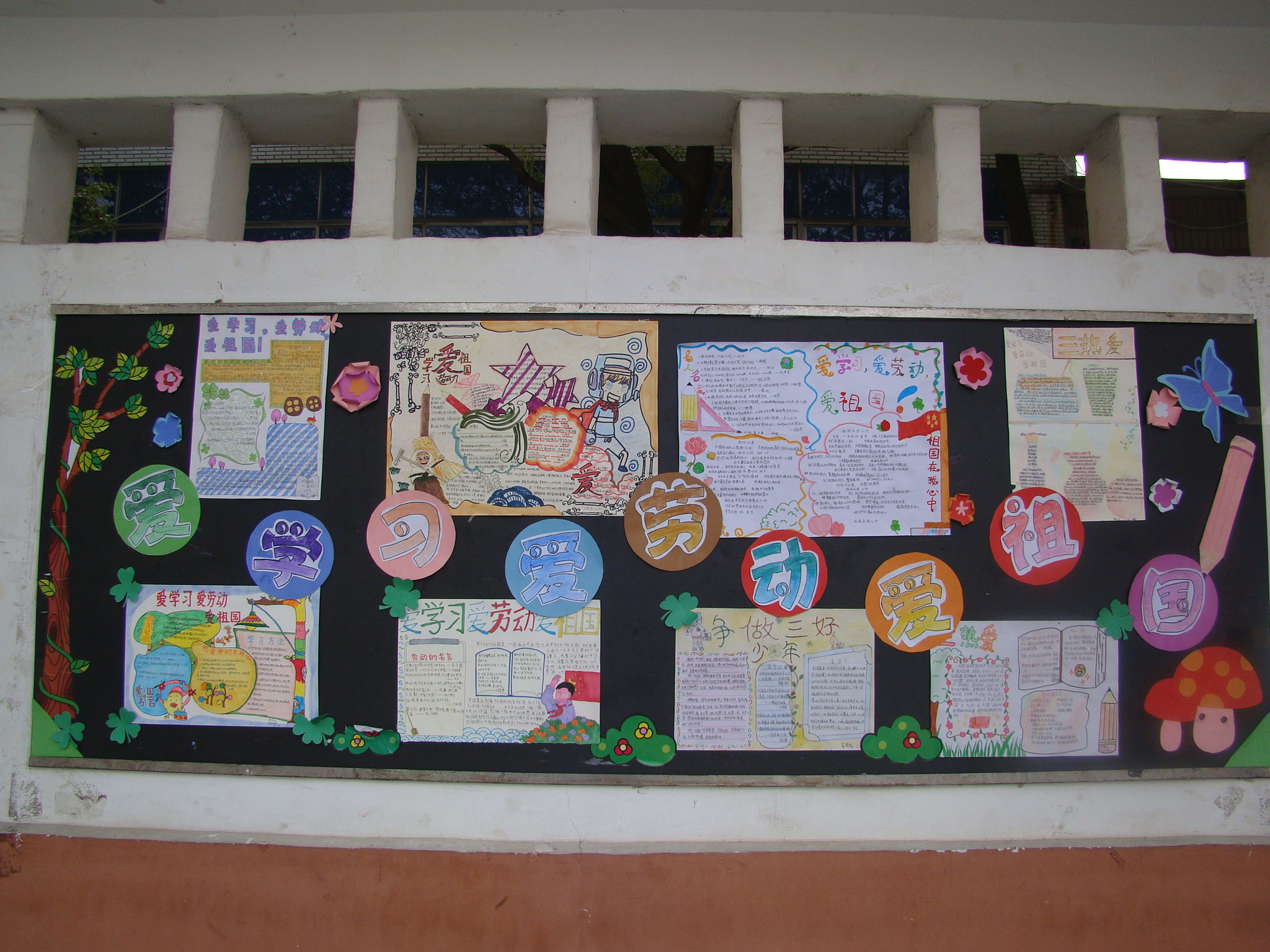 为积极响应习近平总书记向全国青少年提出的“爱学习、爱劳动、爱祖国”的号召,使“三爱”教育不断深入人心,我校于12月初以“三爱”为主题,举行了艺术墙报评比活动。孩子们用手中的画笔描绘自己对“三爱”的理解和认识,艺术墙报内容丰富,形式多样。以下是本期评选出来的 “三星艺术墙报”。