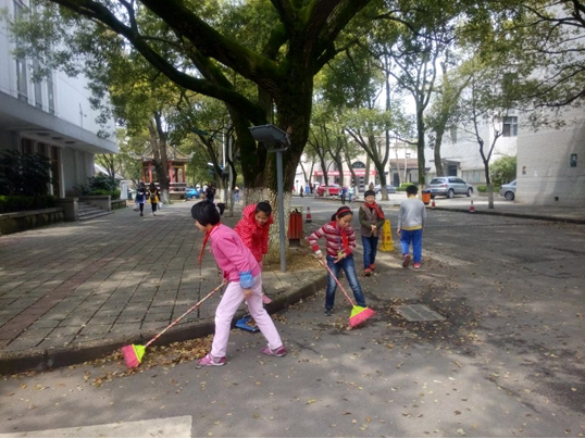 3月24日,天气格外晴朗,四年级的孩子们在各班班主任的带领下怀着无比激动的心情来到师大红场附近清扫落叶。真可谓是人多力量大,虽然落叶如同雪花片那般络绎不断,但这丝毫没有动摇孩子们学雷锋的劲头与热情,他们有的挥舞着扫把扫落叶,有的搬来垃圾桶运落叶,还有的用手捡落叶,忙得不亦乐乎!虽然手脏了,腰酸了,腿麻了,但是孩子们个个脸上都洋溢着幸福的笑容。孩子们都说:“能为美化师大校园出一份力真开心,学雷锋真好!”
