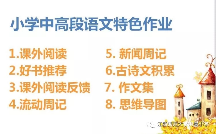 这项作业布置前,年级组老师们先要在本年级组教研活动中,共同商讨出适合本年段孩子的古诗文,然后集结成册。这本书内容浅显、有趣,易于诵读。从儿童心性出发,充分择选音韵和谐,琅琅上口,能打开儿童心灵,启迪儿童灵性的作品。老师会在课堂上教授本书中古诗文以及它的北景资料等有关知识,课后学生在家完成背诵。每堂语文课上课前,学习委员带读前面学过的古诗文,然后点几位同学背诵。这项作业让低段孩子从充满生活气息的、幽默有趣的、贴近孩子语言表达特点的古诗文入手,引领孩子推启学习国学经典之门。