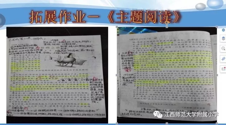 高尔基先生说过:“书籍是人类进步的阶梯。”课外阅读可以让学生不出门,便知天下事,只有博览群书才能博识。阅读是一种巩固学习成果,丰富知识的有效手段。学生阅读课外书的过程便是巩固、积累知识的过程。通过课外阅读,增加了学生对自然科学、社会科学以及世界各地的风土人情的认识和理解。增强学生语言表达能力,以及加强学生思维的广阔性、深刻性、逻辑性、灵活性。同时读书要有方法,在布置主题阅读作业前,老师会教学生阅读方法并提出阅读要求。