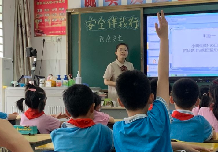 随后,在校长李汶、副校长邓信哲、杨祖德、德育主任秦小艳的陪同下,督导组一行来到了三(3)班听了一堂安全教育班会课。班会课中,我校陈雯宇老师立足身边实例,从细处着手,围绕疫情防护安全、食品卫生安全、运动安全等方面内容进行具体讲解,教育学生培养自身的安全防范意识。