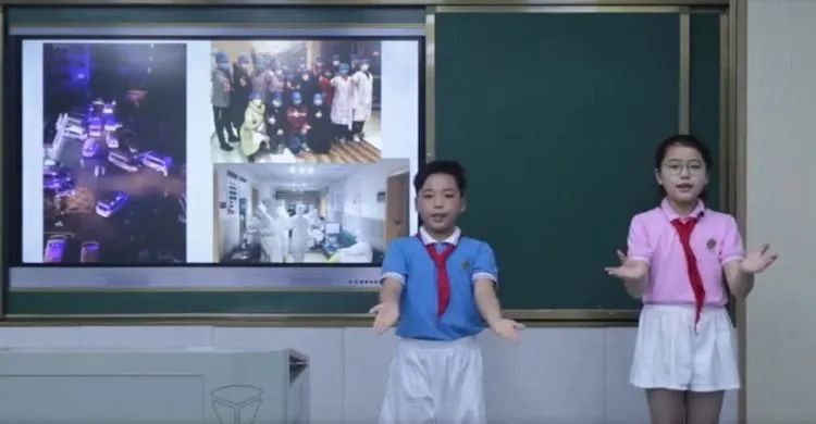 紧接着,由四(6)班邰如墨二(5)班万焌燚两位少先队员为大家带来《听我说,谢谢你》手语舞,表达了对科学家、白衣天使的敬意与感恩!一场疫情,让同学们懂得敬畏自然,热爱生命。
