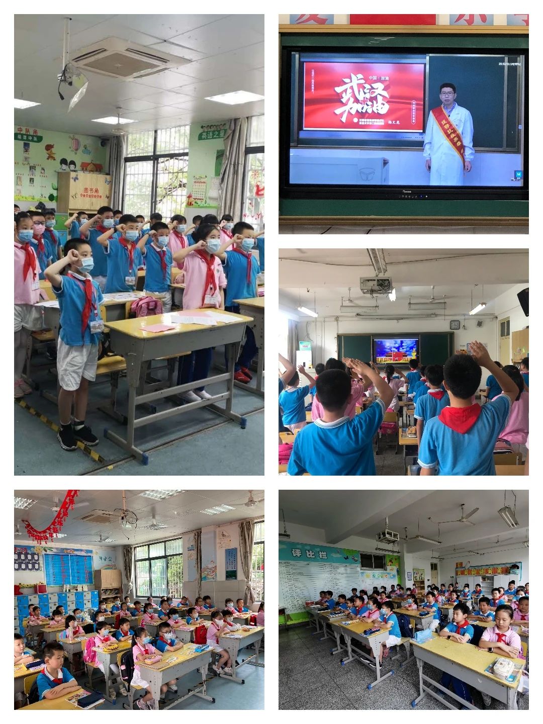 期间,校领导走进课堂,和孩子们同上复学第一讲。