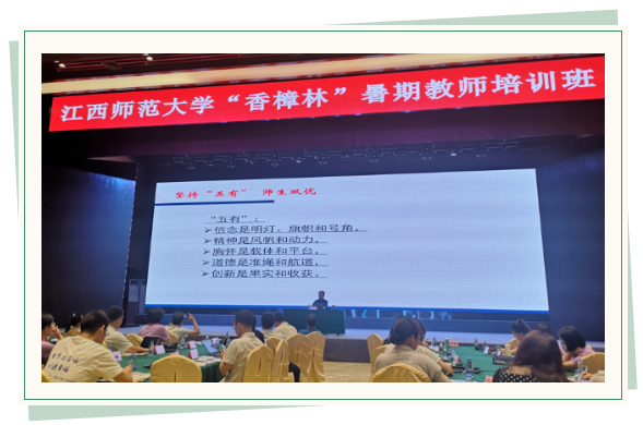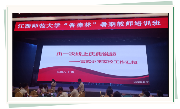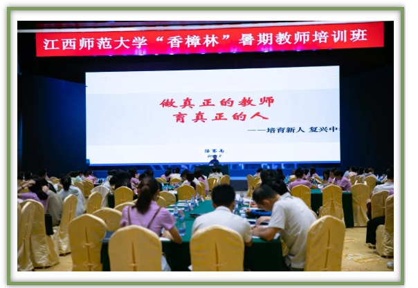 风吹一片叶,万物已惊秋。8月26日,追逐着初秋清晨的第一缕阳光,葡京娱乐城 附小本部、二部、雷式合作校以及湾里合作校共两百余位老师齐聚铜鼓汤里,参加了江西师范大学基础教学合作办主办的第四届“香樟林”暑期教师培训班。