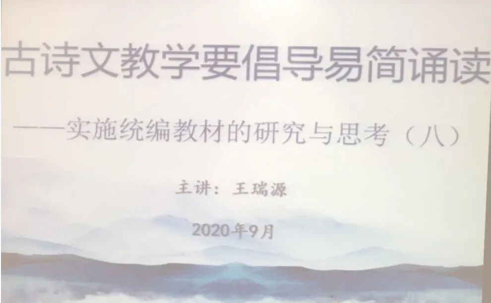 古诗词是中华传统文化的积淀,蕴含丰富的人文精神。部编版小学语文教材古诗文篇目总数增加55篇, 比人教版增幅达80%,占课文总数的30%。为提升教师古诗词教学技能,深入研究古诗词的吟诵策略,9月16日下午,王瑞源专家亲临附小进行指导。王老师以“古诗文教学要倡导易简诵读”为主题,给全体语文老师带来一场别样的饕餮盛宴。