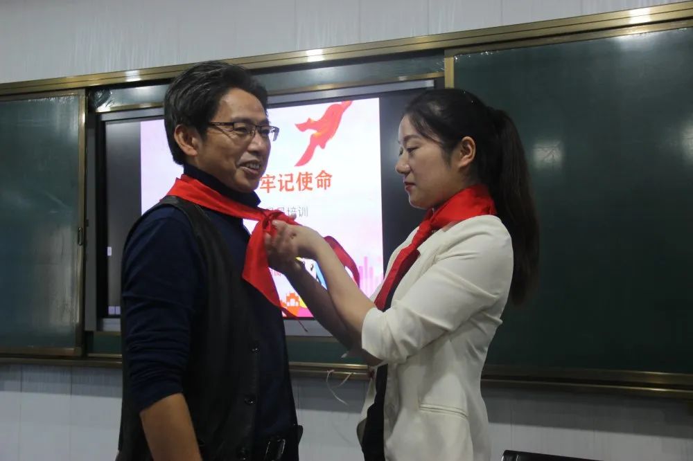 大会伊始,两位中队辅导员给甘书记和邓副校长佩戴红领巾,孙璇老师向全体辅导员示范了正确的队礼,会议中再次强调规范少先队礼仪的重要性,要求中队辅导员加强这方面的教育。