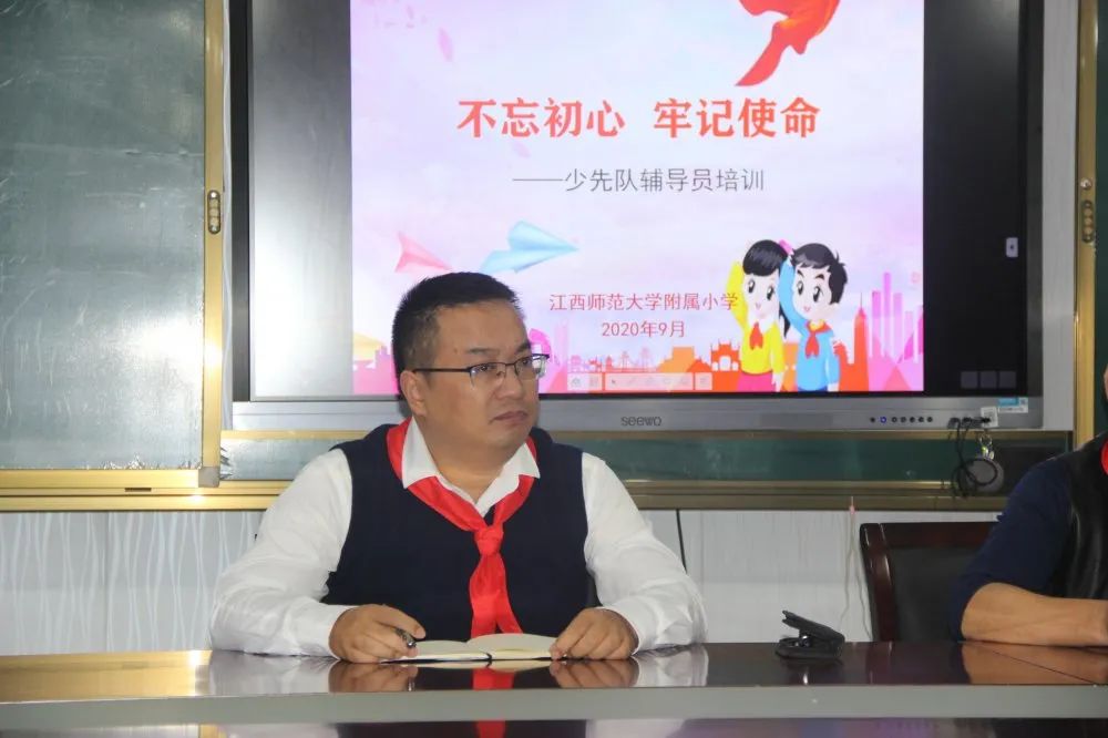 其次培训会上,全体辅导员观摩了南昌市第四届特等奖代表队微队会视频。随后几个在南昌市说课大赛上的获奖选手分别分享了他们在开展活动课的经验。