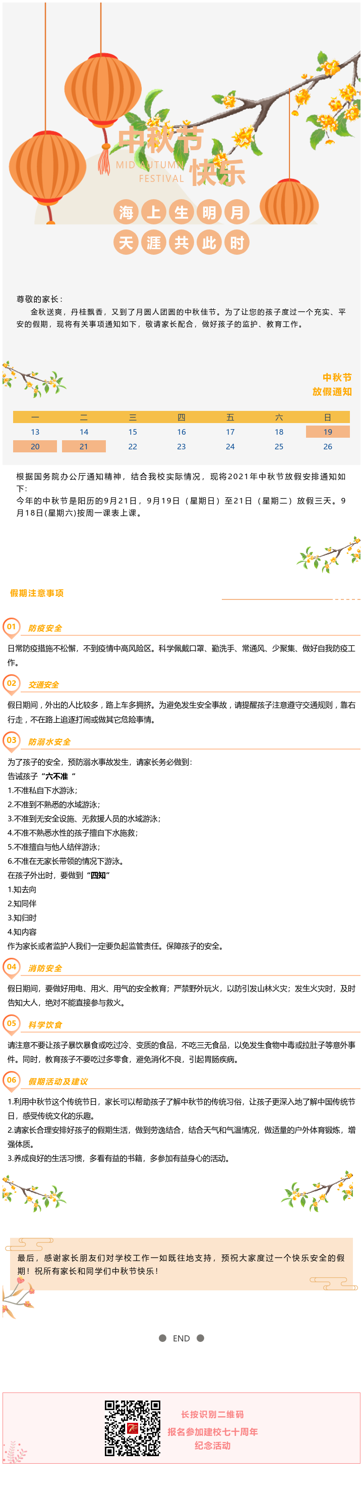 我校中秋节放假通知