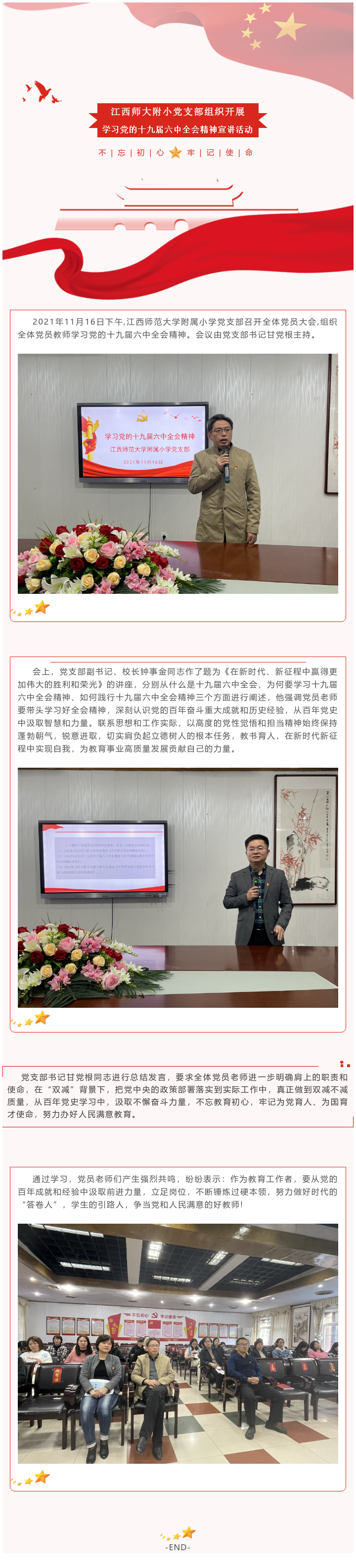葡京娱乐城 附小党支部组织开展学习党的十九届六中全会精神宣讲活动