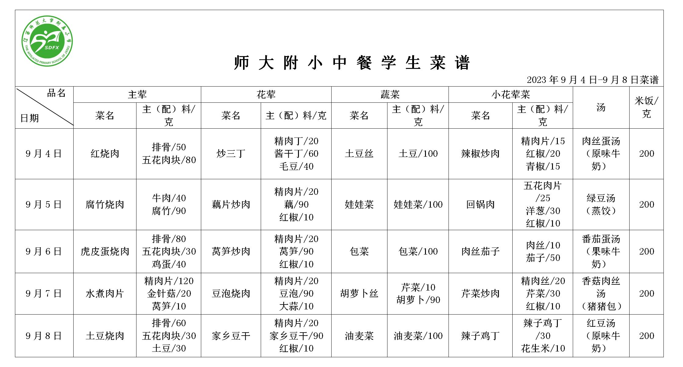 葡京娱乐城 附小2023年9月4日-9月8日食谱