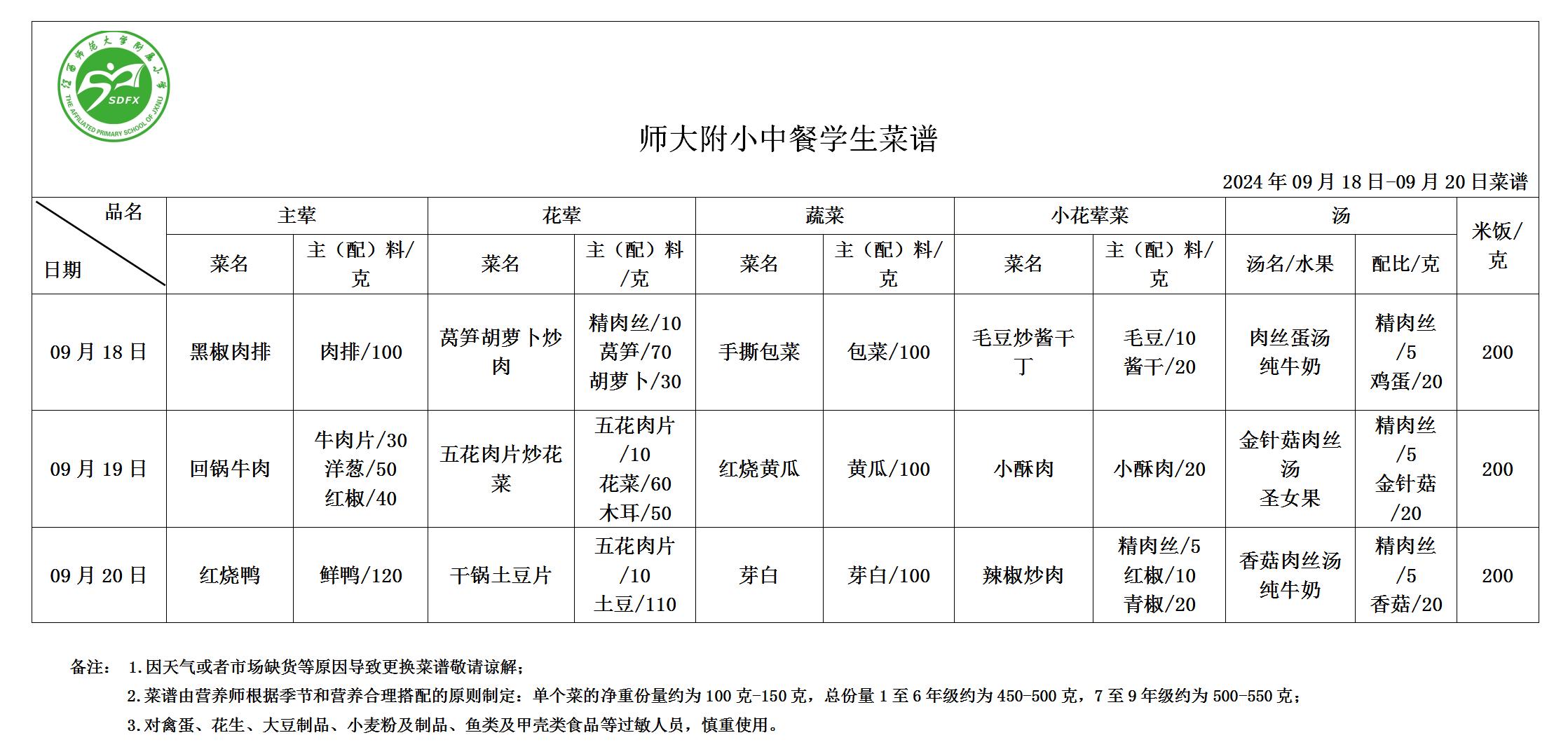 葡京娱乐城 附小2024年9月18日-9月20日食谱