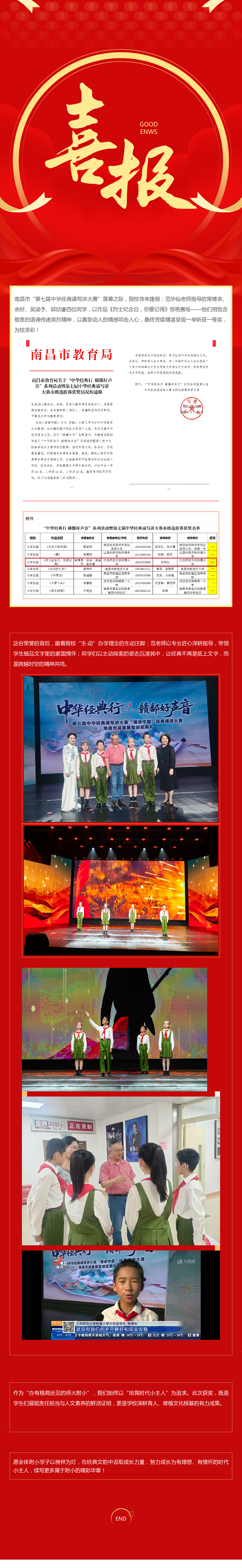 喜报〡热烈祝贺我校学子斩获南昌市“第七届中华经典诵写讲大赛”一等奖!